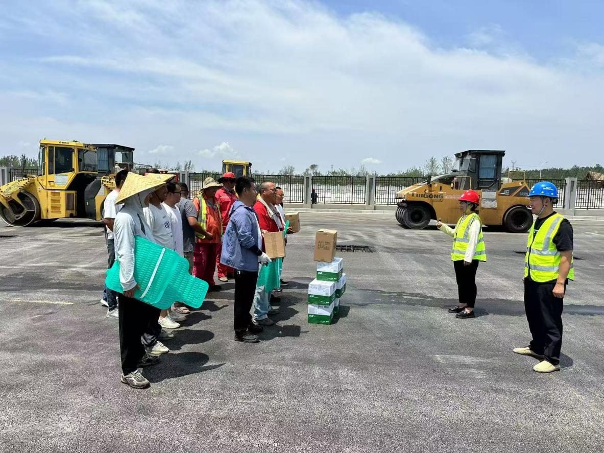 机械分公司对施工现场设备开展“拉网式”隐患排查,重点检修润滑系统、冷却装置及电气线路,避免高温引发故障;同时实行“早开工、晚收工”错峰作业,增设通风降温设施,从技术层面降低高温作业风险。在后勤保障方面,机械分公司为班组配齐藿香正气水、清凉油等防暑药品,发放含淡盐水、绿豆的物资包及知识手册,每日供应冰镇绿豆汤与西瓜;同步配备体温枪监测职工健康,开展中暑应急演练,夯实人文关怀基础。