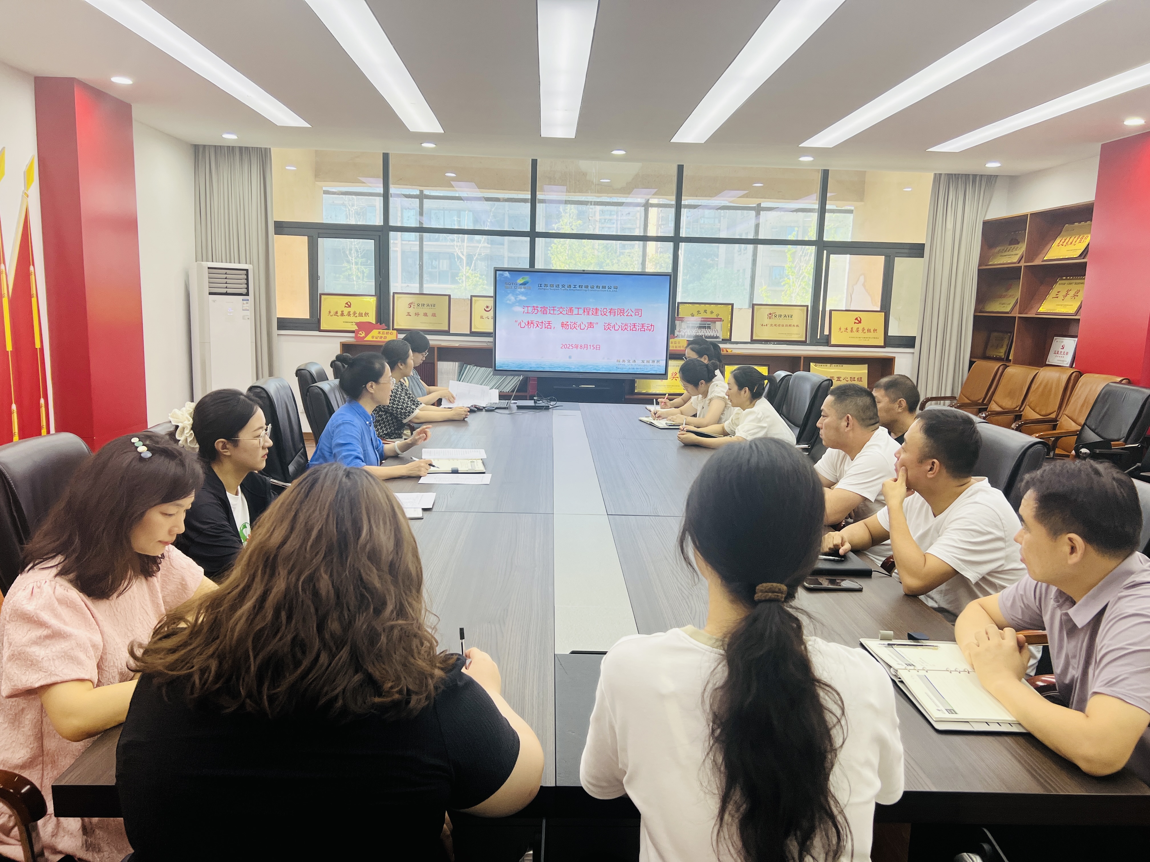 为深入了解员工对公司作风建设工作的意见和建议,增强员工归属感与凝聚力,8月15日,宿迁交建人力资源部在水景公园二楼党建活动室举办第一次“心桥对话,畅谈心声”谈心谈话活动。此次活动由人力资源部经理高小咆与员工面对面交流,为公司与员工之间搭建了一座温暖而坚实的沟通桥梁。