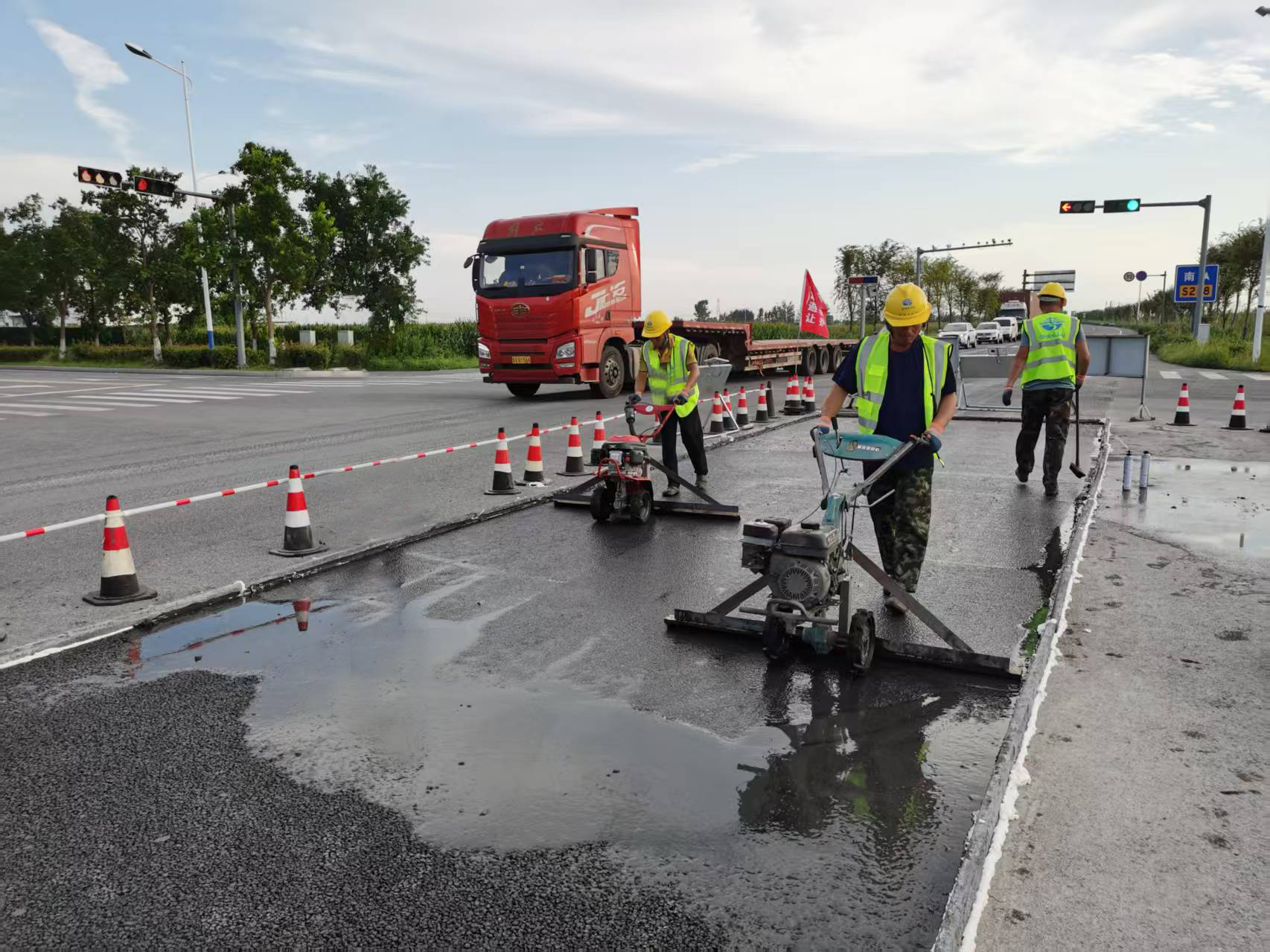 本次实施的S268省道与徐淮路交叉口区域长期受重型车辆频繁启停、转向等复杂受力行为影响,原路面出现不同程度的车辙、拥包等病害。宿迁交建养护分公司以问题为导向,积极引入半柔性灌浆路面结构,通过材料创新与工艺优化,显著提升该路段抗车辙、抗疲劳和耐久性能。灌浆后的路面不仅具备优异的承载能力和稳定性,还能有效抑制反射裂缝扩展,大幅延长道路使用寿命。
