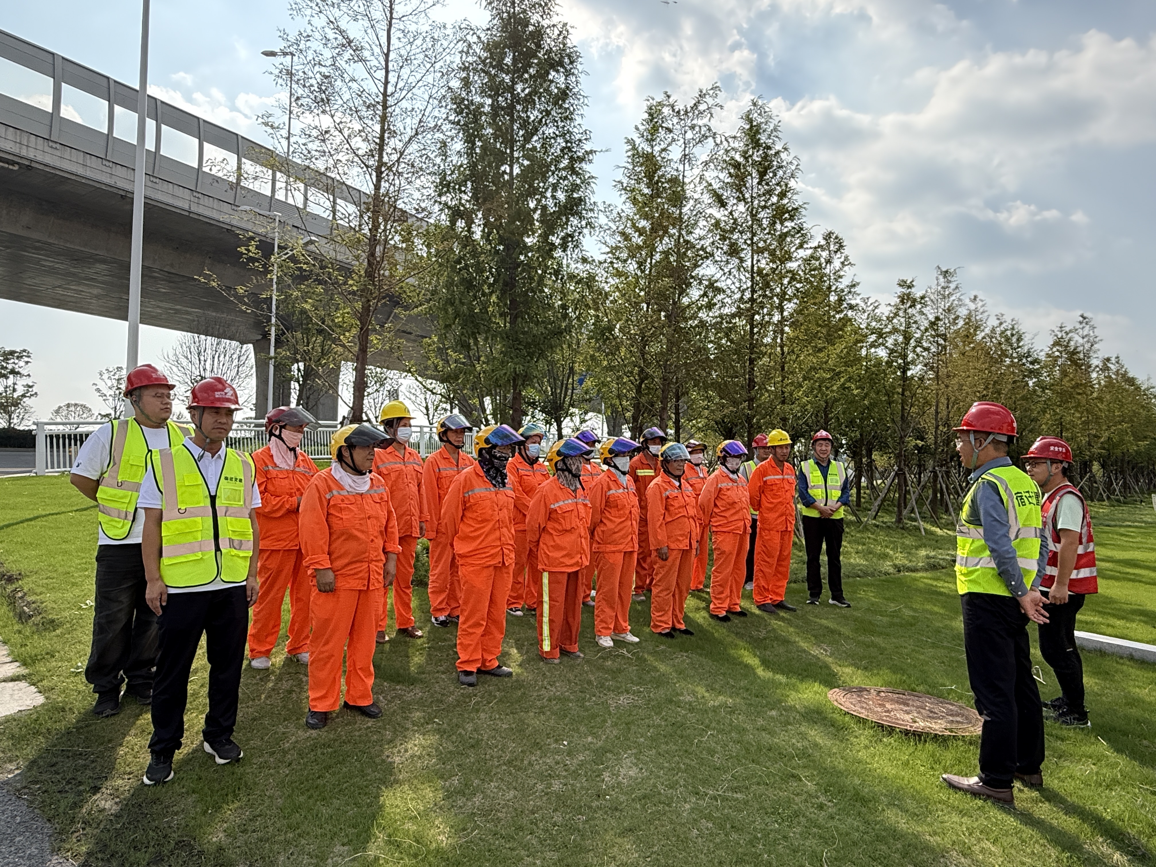 此次检查重点围绕三大核心任务展开。第一,在快速路保洁人员安全防护检查中,检查组逐一对保洁人员的反光背心、安全帽等防护装备佩戴情况进行核验,确保装备完好、穿戴规范,并现场重申道路作业“一盔一戴”“安全警示区设置”等核心要求,从源头规避人员作业风险。