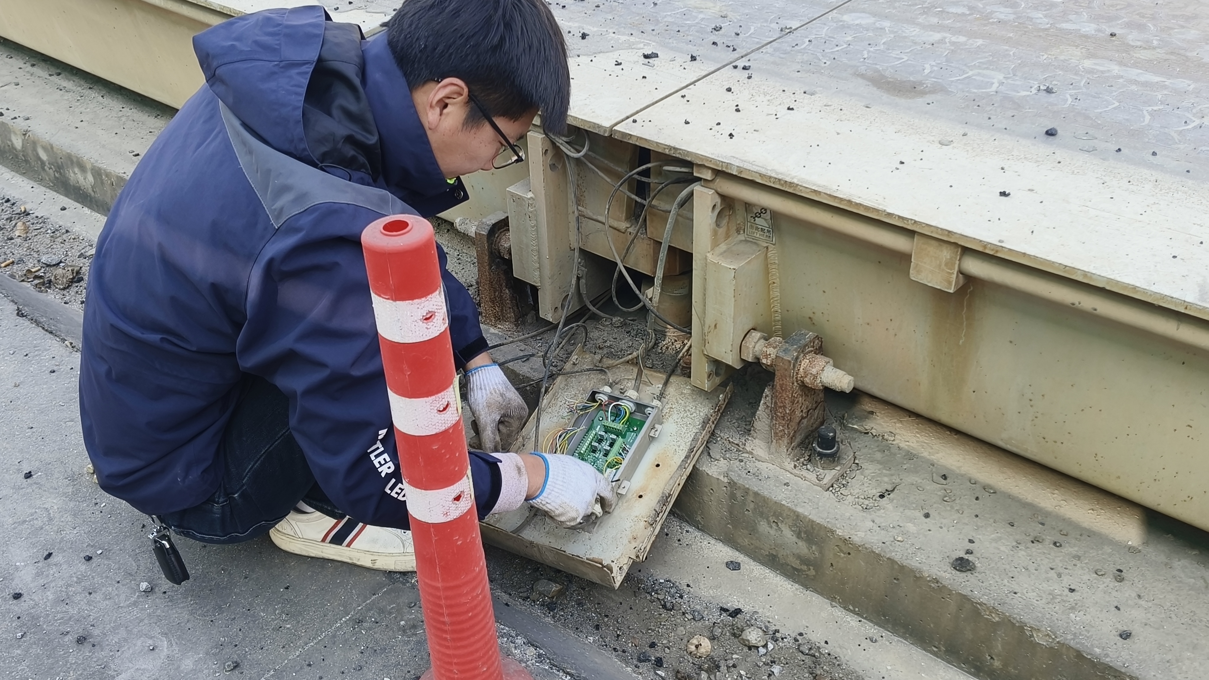 维护前,技术团队先全面排查地磅运行状态,发现传感器地基轻微沉降、部分线路老化裸露、秤体表面积尘积垢等问题,并针对性制定维护方案。工作中,团队先清理传感器地基周边杂物,加固沉降部位并校准安装角度,从根源保障称重数据准确;随后更换老化线路为耐高温抗腐蚀线缆,以阻燃套管包裹后规范铺设,消除安全隐患;同时深度清理秤体及周边,疏通排水系统防止设备浸泡。